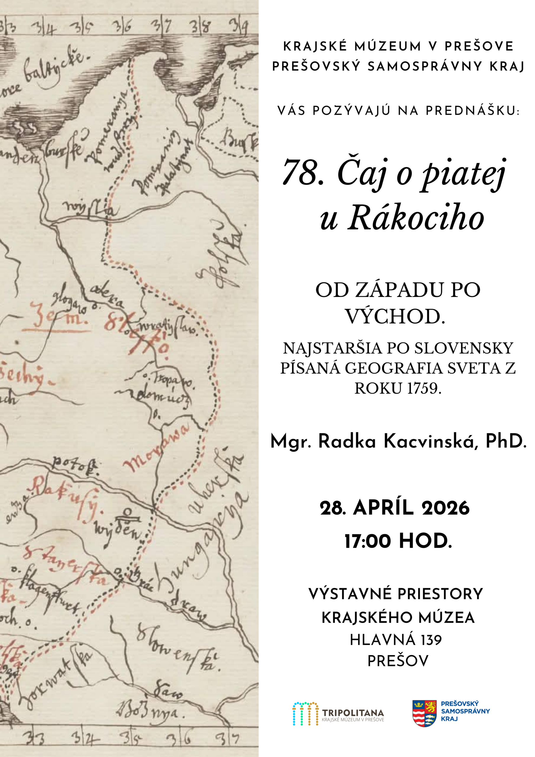 Krajské múzeum v Prešove a Prešovský samosprávny kraj vás pozývajú na ďalší Čaj o piatej u Rákociho.